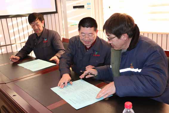 公司總經(jīng)理佟國山、公司副總經(jīng)理兼工會(huì)主席邱延軍與生產(chǎn)單位簽訂2016年安全生產(chǎn)目標(biāo)責(zé)任狀